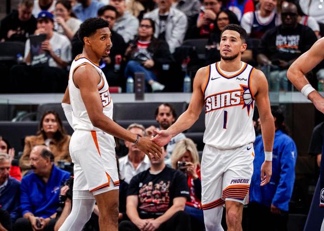 本场比赛,太阳派出了以防守强硬著称的狄龙对位哈登。狄龙一如既往地使用贴身紧逼、垃圾话干扰和肢体对抗,试图打乱哈登的节奏。然而,哈登非但没有退缩,反而像被点燃了斗志。他一次次强行突破狄龙防区,用高难度后撤步三分、急停中投和突破上篮完成终结,每一次得分都像在回应对手的挑衅。尤其是第二节那波连中三记三分的表演,哈登仿佛穿越回了2019年的休斯顿火箭时期,那个场均36.1分的得分王似乎从未离开。