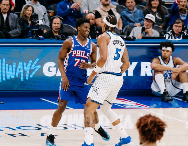 但最意外的球队,是76人,开局四连胜,东部第一!今夏76人用探花签选择的埃奇库姆,场均22.3分5.5篮板5.5助攻,联合马克西场均37.5分3.8篮板8.3助攻,成为联盟最犀利的二人组,双人组合场均得分联盟第一!此外,休赛期被迫签下资质报价的格莱姆斯,和乌布雷搭建起最强侧翼组合,场均都是17.8分入账,这四人组合,将76人拉升到场均得分(129.3分)联盟第三,三分球命中率41.9%联盟第一,场均命中16.3记三分球联盟第三!还有一点很有趣,76人本赛季场均失误只有12.3次,联盟最佳水平!