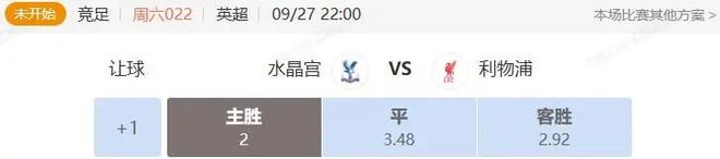 英超+德甲串关分享 水晶宫VS利物浦+门兴VS法兰克福